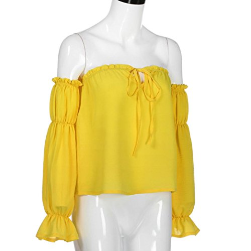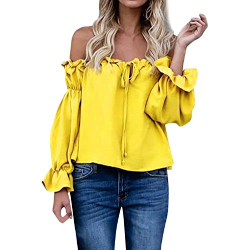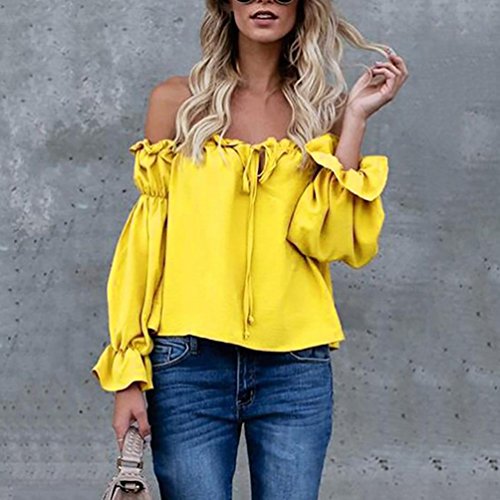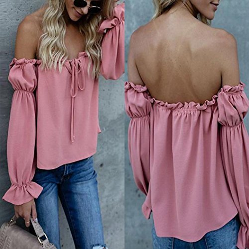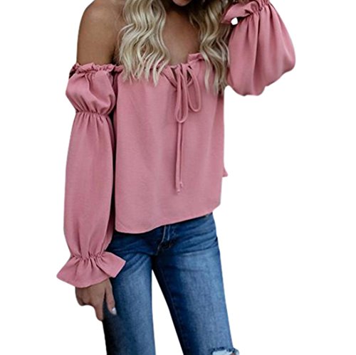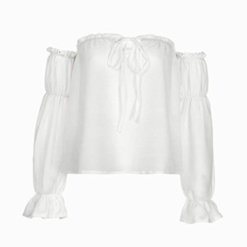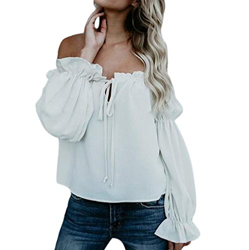 Product Description Women Tops Off Shoulder Shirt Long Sleeve Chiffon Tie Top Blouse Features: 1.It is made of high quality materials,durable enought for your daily wearing 2.Very cool to wear ,New Look,New You 3.Off Shoulder design can make you more lovely and vitality, 4.This lightweight, Blouse is perfect for those carefree days! Product information: Season:Spring,Summer Gender:Women Occasion:Casual, Material:Chiffon Pattern Type:Solid Style:Casual, Sleeve length:Full Length:Regular Sihouette:Pencil Fit:Fits ture to size Thickness:Standard How to wash:Hand wash Cold,Hang or Line Dry What you get:1*Women Blouse Size Chart(Unit:cm/inch) Size:S Bust:66-96cm/26.0"-37.8" Sleeve:48cm/18.9" Length:38cm/14.9" Size:M Bust:70-100cm/27.5"-39.3" Sleeve:49cm/19.3" Length:39cm/15.3" Size:L Bust:74-104cm/29.1"-40.9" Sleeve:50cm/19.7" Length:40cm/15.7" Size:XL Bust:78-108cm/30.7"-42.5" Sleeve:51cm/20.0" Length:41cm/16.1" Note: -Please allow 1-2cm measuring deviation due to manual measurement. - Please check the Size Chart before order. If you are not sure the size, please send message to us. 0