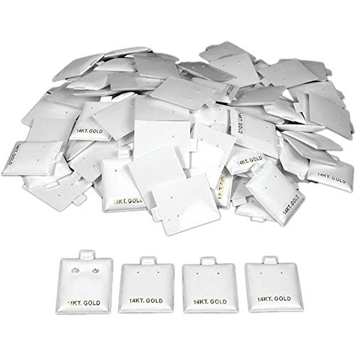 100 14K Gold White Earring Puff Cards Case Display 1.5"
