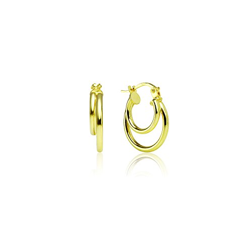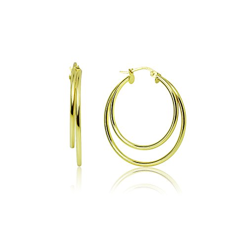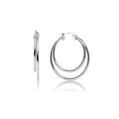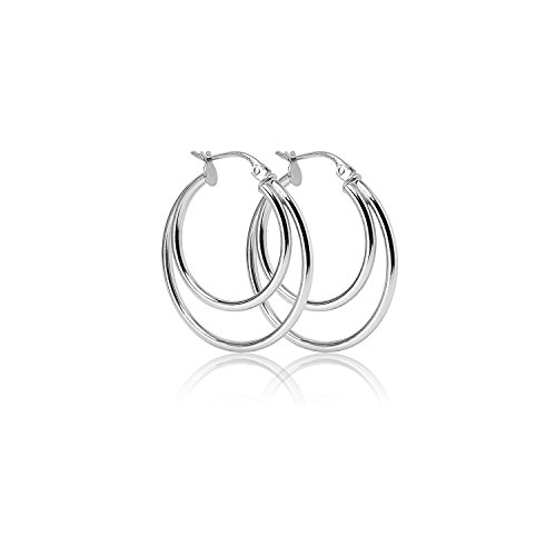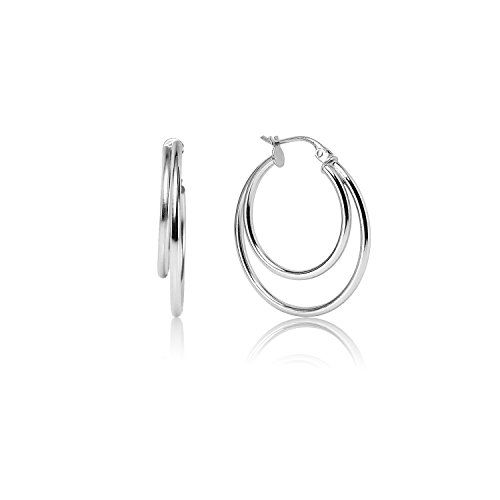 LOVVE Sterling Silver High Polished Double Circle Round Click-Top Hoop Earrings, All Sizes