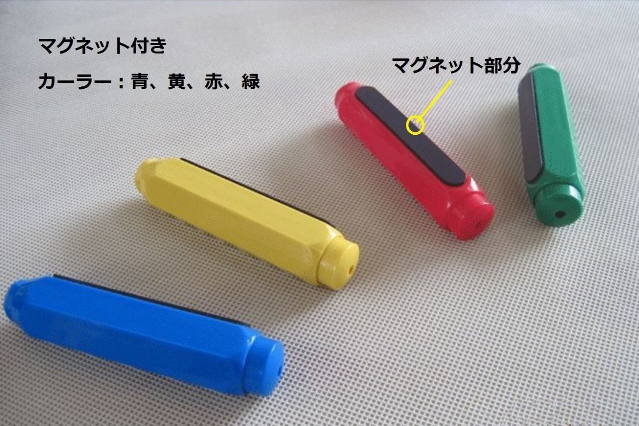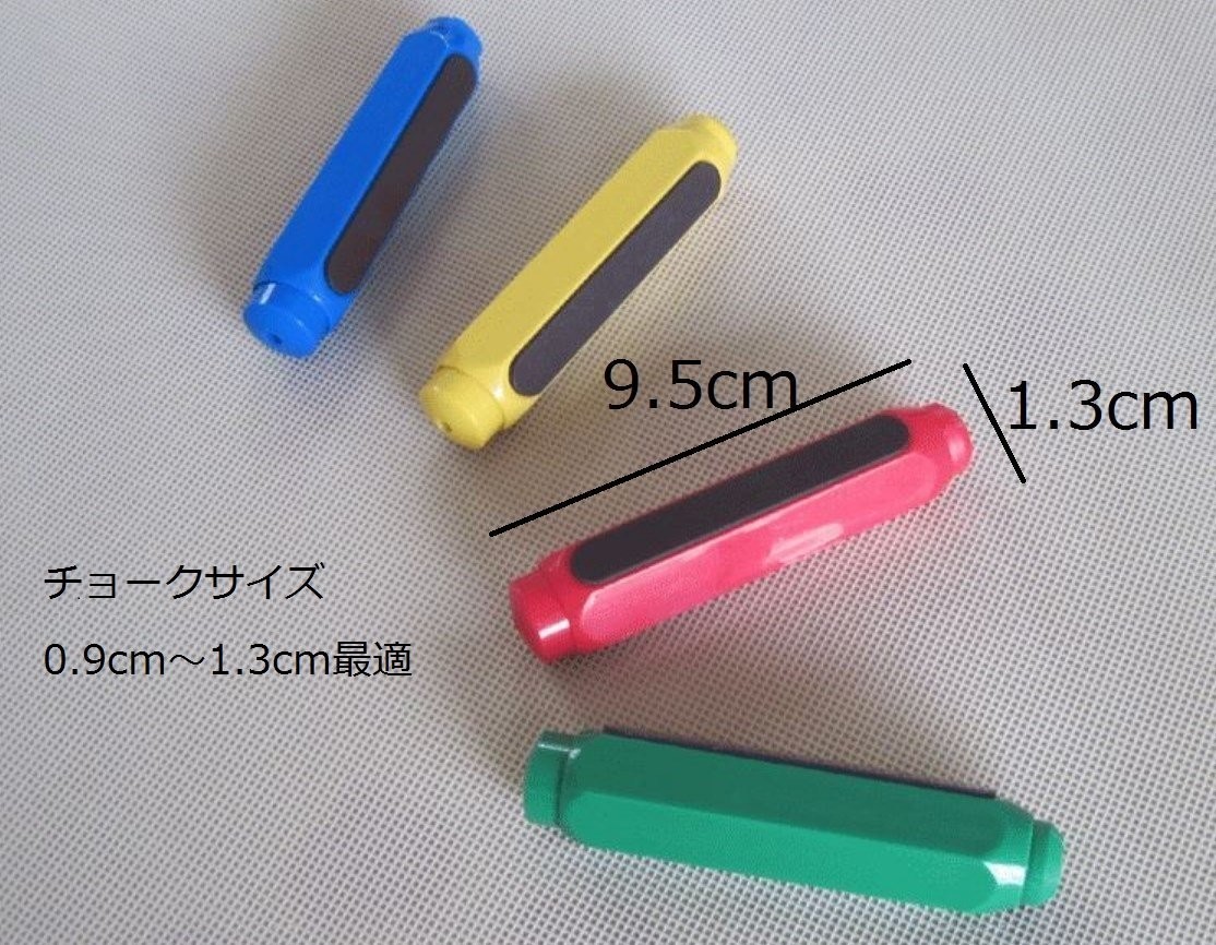 【商品情報】・カーラー:青、黄、赤、緑・本体サイズ::9.5cm・チョークサイズ:0.9cm~1.3cm最適・マグネット付き・梱包時にロゴシールを商品に貼付しております。