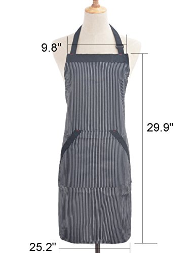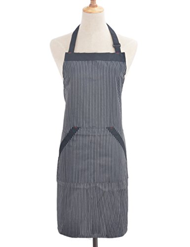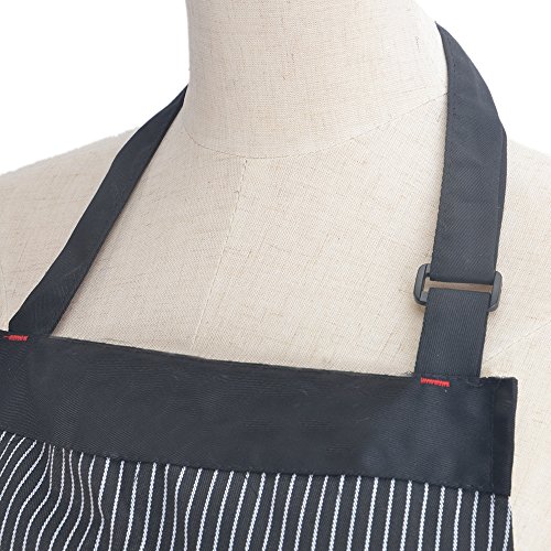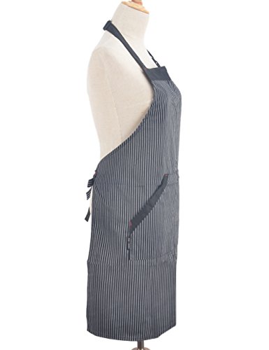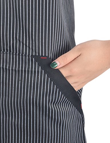Adjustable Chef Works Floral Striped Bib Apron with Pockets, Fashionable and Practical, Commercial Restaurant Kitchen Cooking Aprons for Women Men Unisex Work Waiter Home, Fine Striped