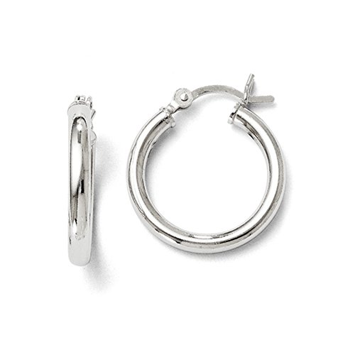 Simple and classic, our sterling silver round hoops feature a snap-tight hinged post and a lightweight hollow tube design that measures approximately 2.5mm thick by 17mm (5/8 inch) in diameter.