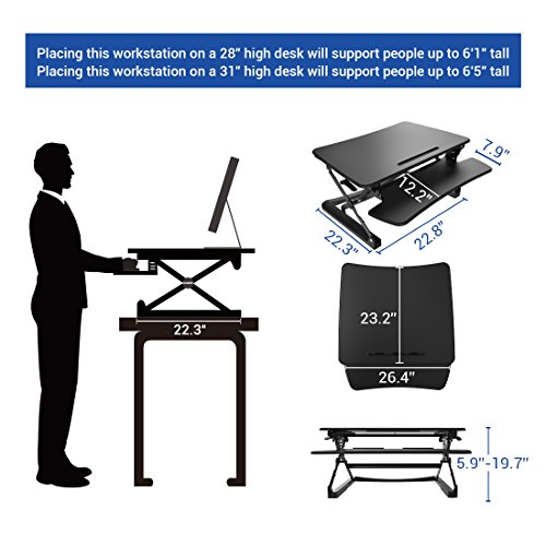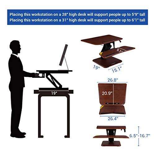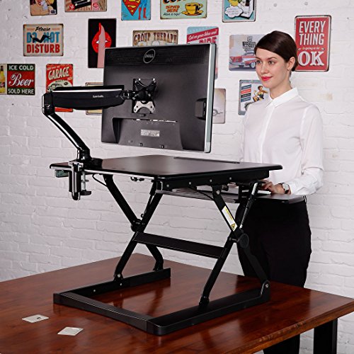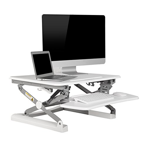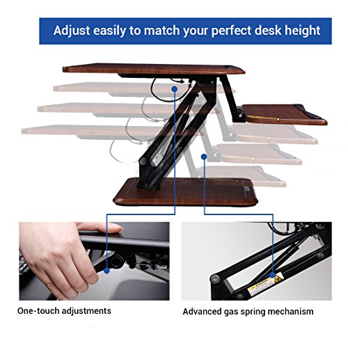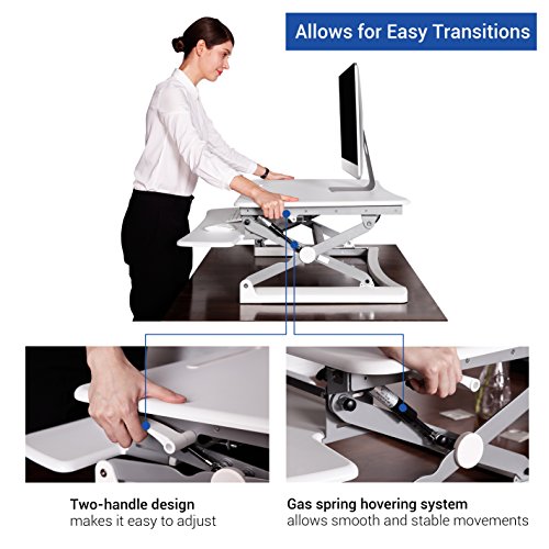 -. Feature : Smooth and Stable Movement: FlexiSpot's gas sP.R.Ing hovering system allows the workstation to smoothly adjust for sitting or standing with just a light squeeze of the handles. / Large Work Surface,Wide Keyboard Tray: offer a deep, wide surface. There's room for your work materials and enough space to put your monitor at a comfortable reading distance. / Ergonomic Benefits: Choose from 12 height levels as you transition between sitting and standing throughout the day. Our products support a better posture and healthy wrist and arm positions. Plus, our desktops are compatible with ergonomic monitor mounts. / Straight Up and Down Movement: Our workstation rises and folds vertically, within its own footP.R.Int. There's no need to make spatial accommodations, as may be required in comparable products. / High Quality Construction: Support up to 35 lbs,has undergone extensive testing for balance, stability, and movement - including a fatigue test of 6,000 height adjustments. The work surface is made of an environmentally friendly medium-density fiberboard, which meets the high standards of the California Air Resources Board