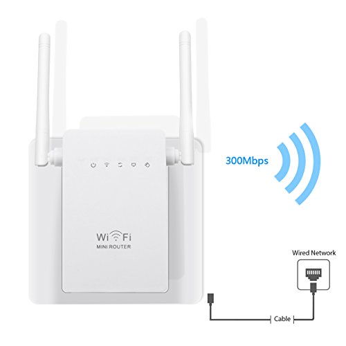 MECO Wifi Range Extender Wireless Repeater Router 300Mbps Wifi Signal Amplifier Repeater Enhance Supports Repeater/Access Point/Router Mode with two Gigabit Ethernet Port