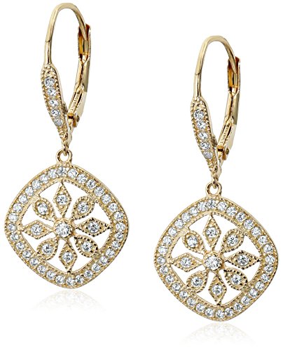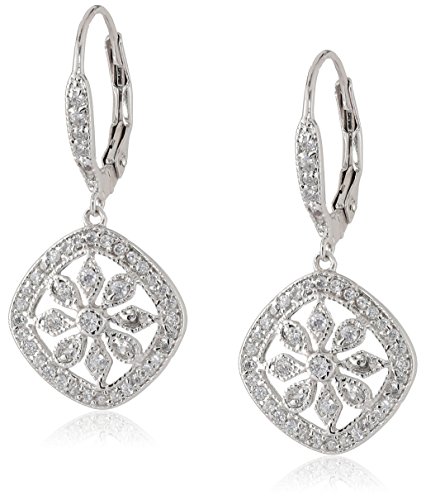 Sterling silver drop earrings featuring floral pendants with cushion-shape frames and pave-set cubic zirconia