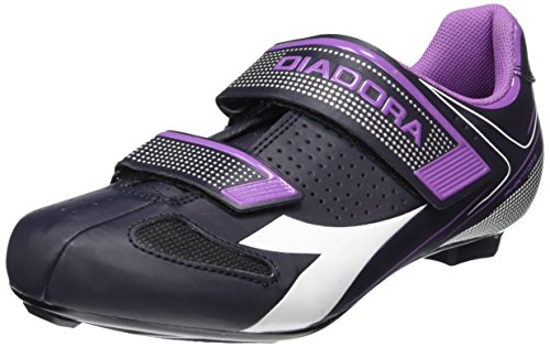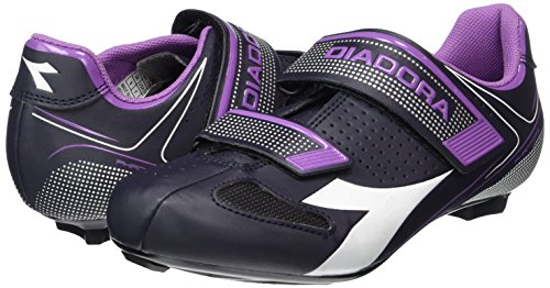 Studio : Diadora Publisher : Diadora Product Description Fitting: Woman Last perfectly envelops the woman?s foot.Closure: With 2 Velcro straps and Double Ring Speed Lace adjustment system. Upper: Suprell ? Tech, with Morpho Cage A-M. The special ?space frame? design to ensure greater stability, breathability and comfort. Heel Cup: Pre-moulded ergonomic TPU heel cup to ensure better heel containment. Arch support: EVA and anti-stretch fabric.Sole. Diadora Diapan Technology, Racer CR, composite reinforced The special design of the extremely thick ?space frame? sole has reduced weight and thickness, guarantees good rigidity for a direct thrust and effective power transmission. Fitted with ?memory Look? system and ?High Grip Finish? in the pedal cleat area. 0