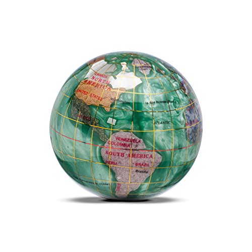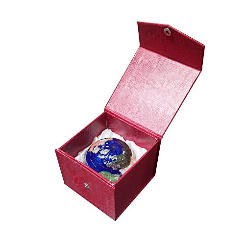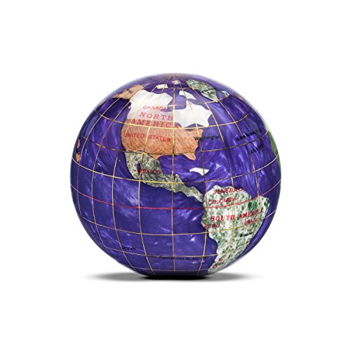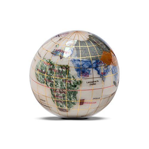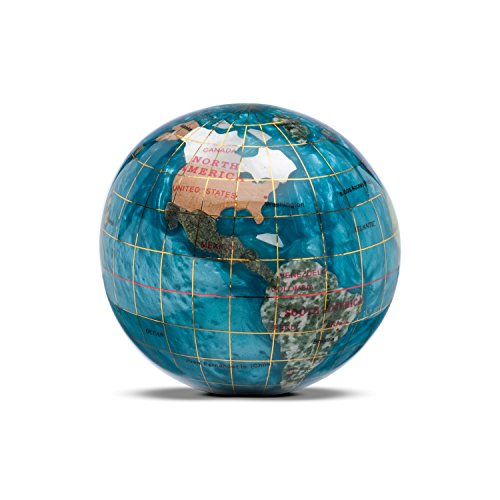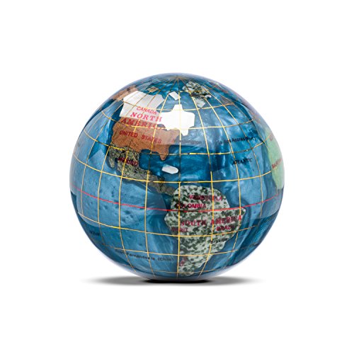 Our gemstone globes have the power to captivate because of their breathtaking beauty, fine workmanship, and superior quality. Each gemstone is hand carved from the highest quality jewelry grade gemstones and is carefully formed to the recognized countries and states of the world. The geographical integrity of each country is upheld in almost all instances by using indigenous gemstones to represent a given country's boundaries. The glistening quality of the Opalite ocean's silken waves communicate depth and give a fluid effect to the assembled bodies of water. The awe-inspiring waters are brought to life with crushed mother of pearl, abalone, and opal while using resin for their holding properties. This gemstone globe paperweight is a masterpiece to behold that will be treasured for many years to come.Feature