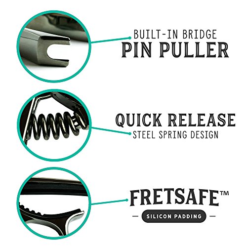 Reynolds Guitar Accessories Capo Acoustic and Electric Guitars with Built in Guitar Bridge Pin Puller - Tungsten Steel