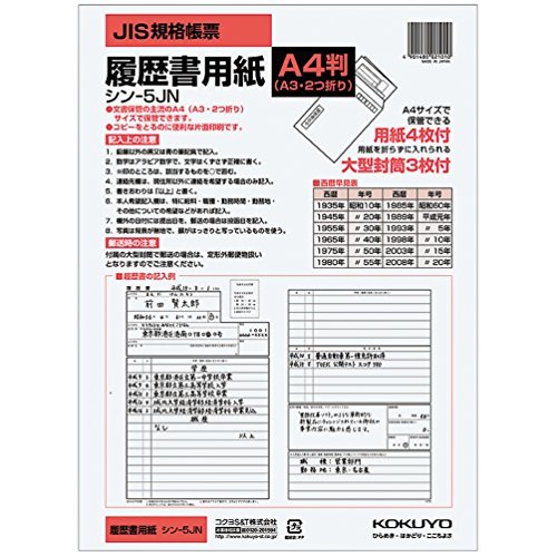 Kokuyo resume A4 (A3 two-fold) large envelope with three thin -5JN