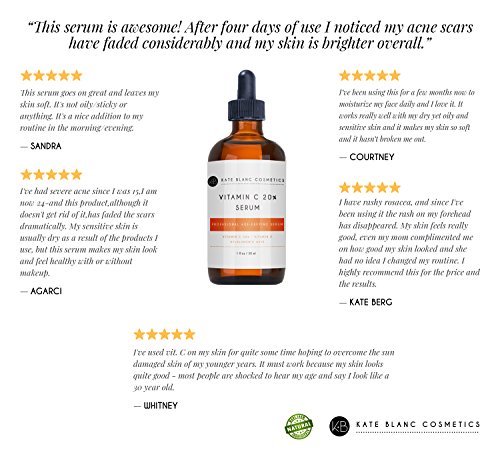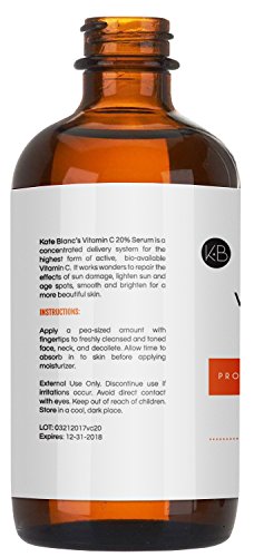 VITAMINC C SERUM FOR FACE AND EYE AREA - Kate Blanc's Vitamin C Serum is guaranteed to be authentic and is full of vitamins. It also includes hyaluronic acid and vitamin E. Proven results to soften skin and reduce wrinkles and fine lines, giving it a radiant and energetic look. Vitamin C Serum is used with moisturizer for maximum results. 100% Guaranteed Authentic or FULL REFUND.
