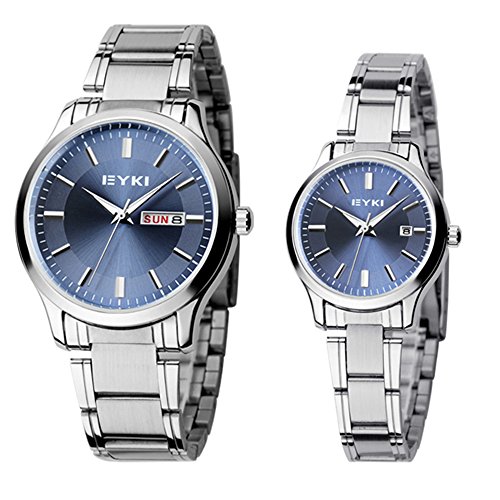 -. Title : EYKI 8598 Couple Watches Quartz Waterproof Wristwatches for Lovers Pair in Package Blue Dial and Stainless Steel Band