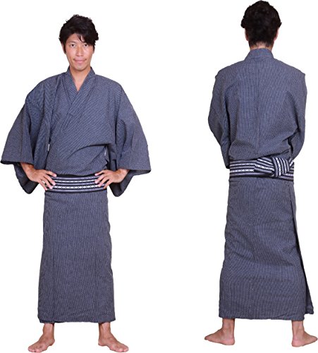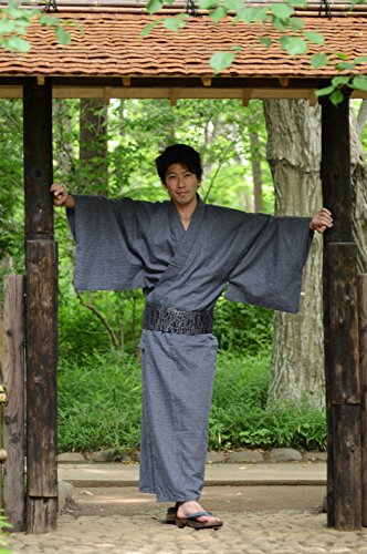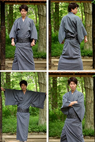 - Title : sakura Men's Yukata kimono with obi belt set skura model black Large ( Black belt )
