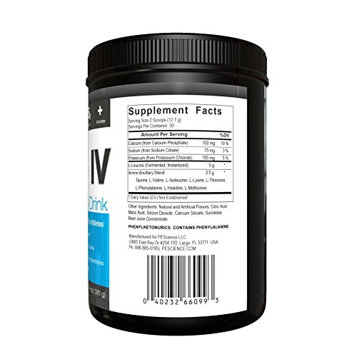 Studio : PEScience Publisher : PEScience Binding : Health and Beauty Product Description Amino IV - The Most Versatile Amino Product We live in a day and age in which optimizing performance, recovery, and results are integral to every meal we eat and supplement we consume. We don't just consume post-workout protein and call it a day...we've learned from science that taking separate, free-form amino acids can give you an extra edge to take your progress to the next level. Amino IV: A BCAA product with added benefits to take it beyond just another BCAA. You spend all the time and money working hard and eating right...why sell yourself short on your essential supplements? High Leucine Content - 5 Grams per Serving! Countless research has shown that leucine is the key amino acid for activating muscle protein synthesis. Amounts as low as 1.8g (in combination with EAAs) have shown to be effective, with more commonly researched amounts around 2.5g (in combination with BCAAs), and the high amounts in the 3.6g range (alone, and in combination with EAAs). We don't mess around with Amino IV -- 5 grams of leucine per serving, and 30 servings per bottle makes Amino IV a cost effective leucine source, before we even get into the perks of the rest of the formula! 0