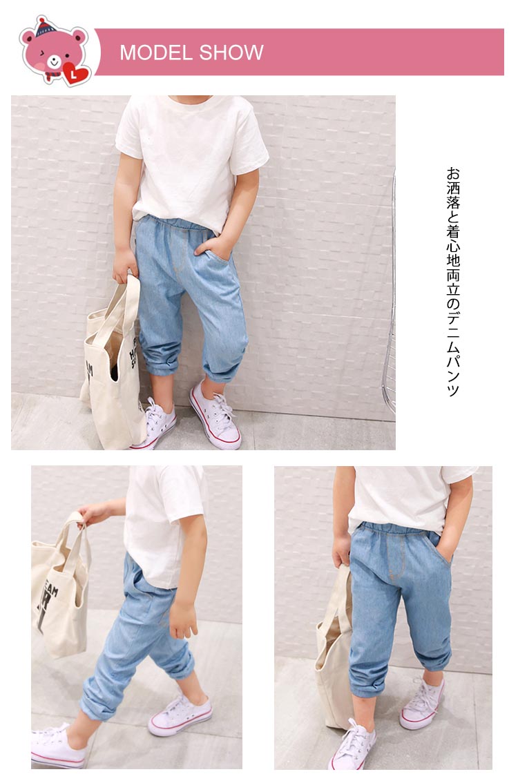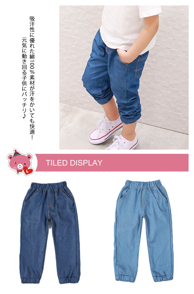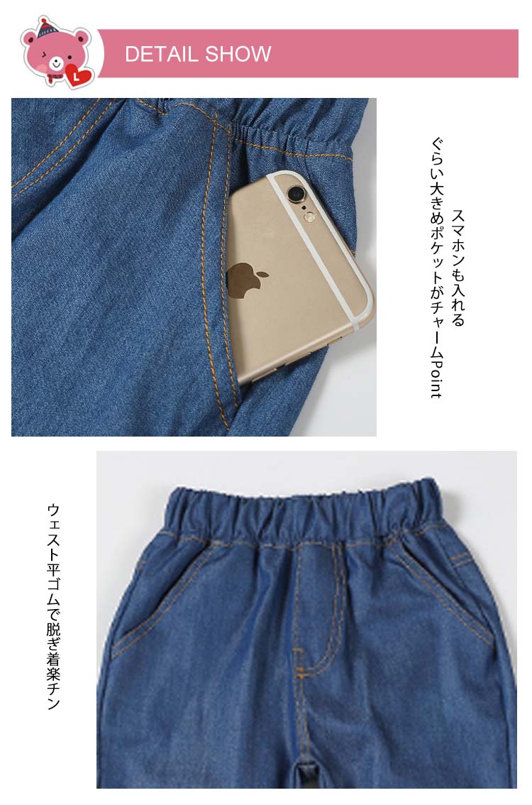 | お洒落と着心地両立のデニムパンツ通気性抜群のコットン柔らかいデニムパンツが窮屈感なく、リラックスな着心地◎無地シンプルのユニセックスアイテムで、男女関係なく愛用していただけます。吸汗性に優れた綿100%素材が汗をかいても快適!元気に動き回る子供にバッチリ♪ | |