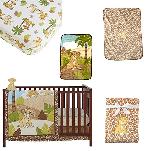 -. Feature : Includes: Simba and Nala comforter, Sun-P.R.Int fitted sheet, perfect cuddling companion animal P.R.Inted fuzzy blanket and Lion King theme cuddly soft fitted sheet, simba P.R.Int infant's luxury plush blanket, Leopard-P.R.Int dust ruffle, Simba wall decor / This Disney Baby blanket stars Simba and features gentle colors as well as amazingly soft material, making it perfect for bedtime, afternoon naps and chilly stroller rides. / This fuzzy blanket by Disney is the perfect cuddling companion for your little angel. Featuring the adorable Simba from "The Lion King," your child will never want to let go of this comfy blanket. The wild and exotic animal P.R.Int design brings excitement into any bedroom arrangement. / The soft cotton blend will be smooth against his skin, and the Lion King theme sheet will go perfectly with any nature-based motif. / Bring the fun-loving style of The Lion King's Simba into your nursery with this 4-piece crib bedding set from Disney.