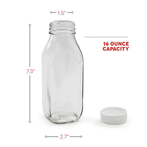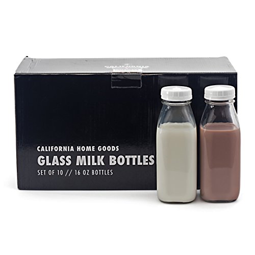 At California Home Goods we often find ourselves pining for the days when the milkman brought home a delicious beverage. That’s why we designed the vintage-style 1 pint glass milk bottles for holding all your preferred beverage needs! At a 16 ounce capacity, each bottle is blown from high-grade BPA free glass and built to be reused over and over again. Our customers love using these bottles for stylishly holding fruit waters, juices, smoothies, kombucha, coffee, and more. Each Set Comes With: - 10 Glass Bottles @ 16 Ounce Capacity
