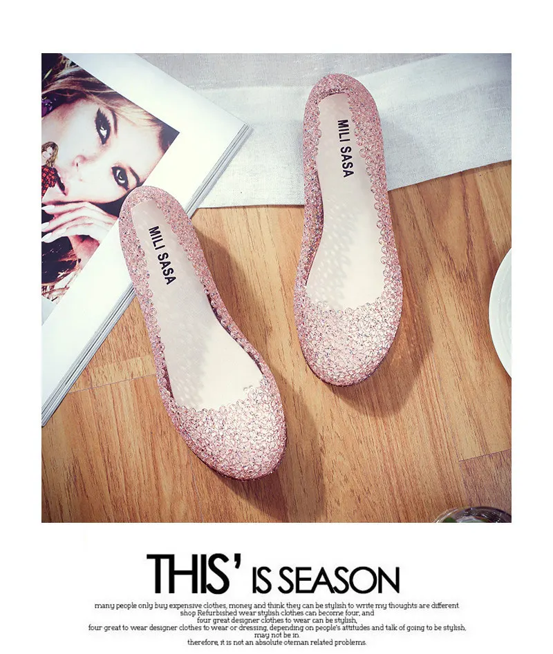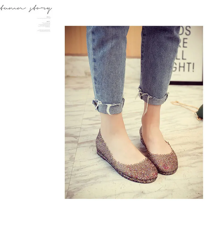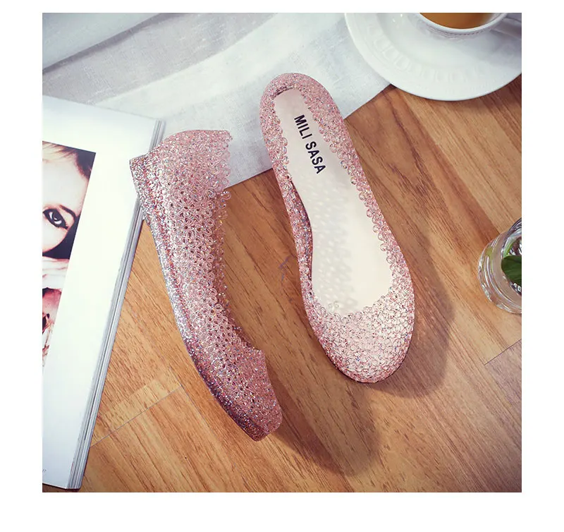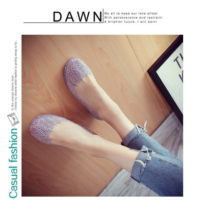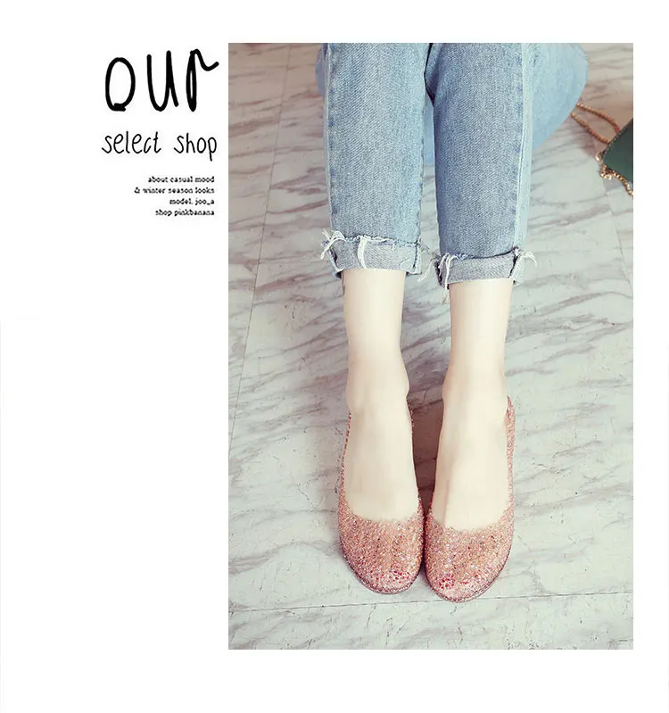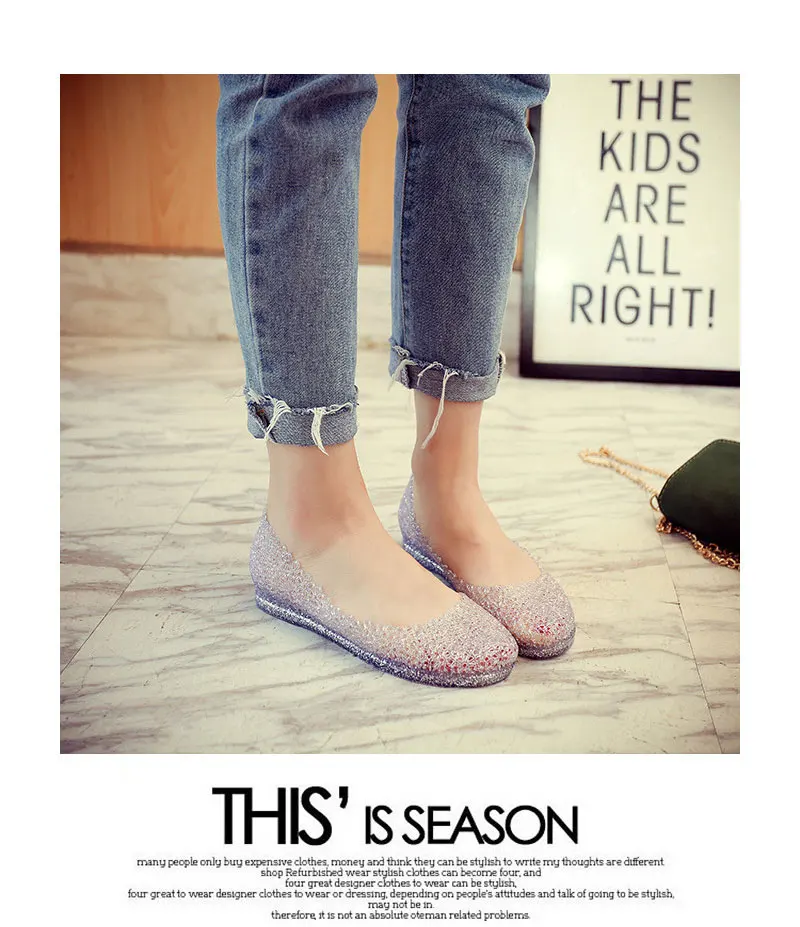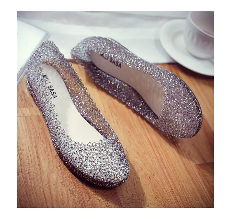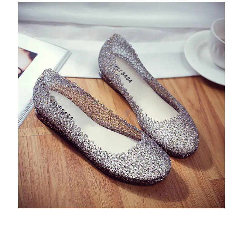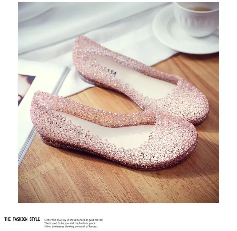 Features:jelly color / transparent / bling bling shoes / crystal shoes