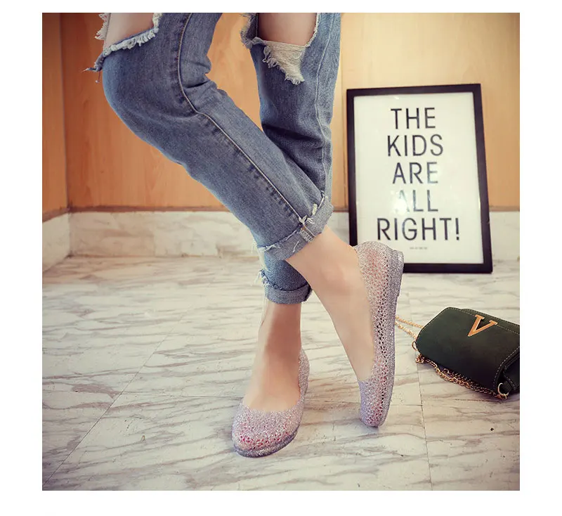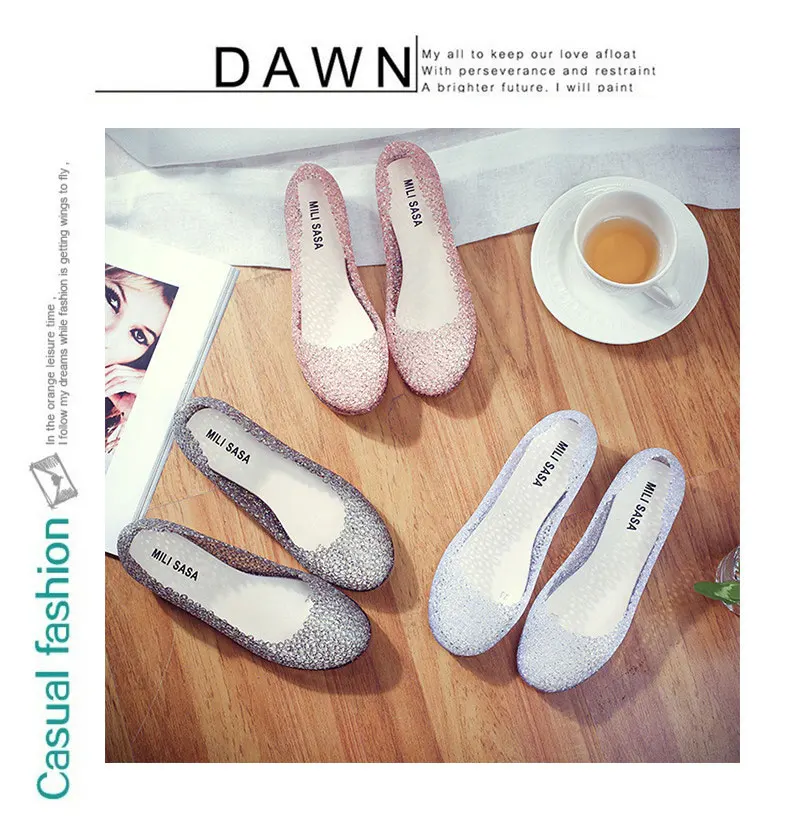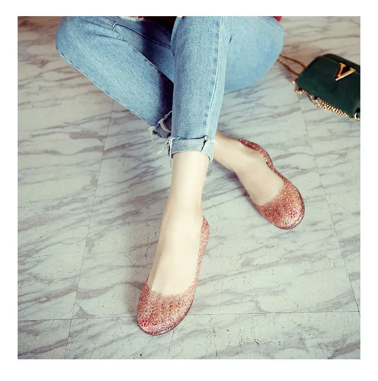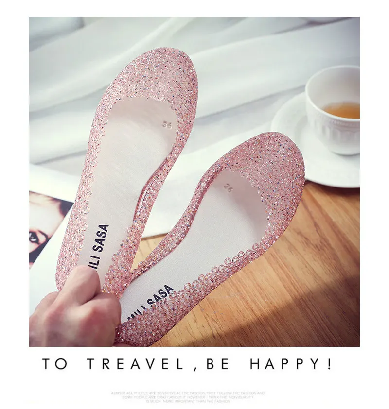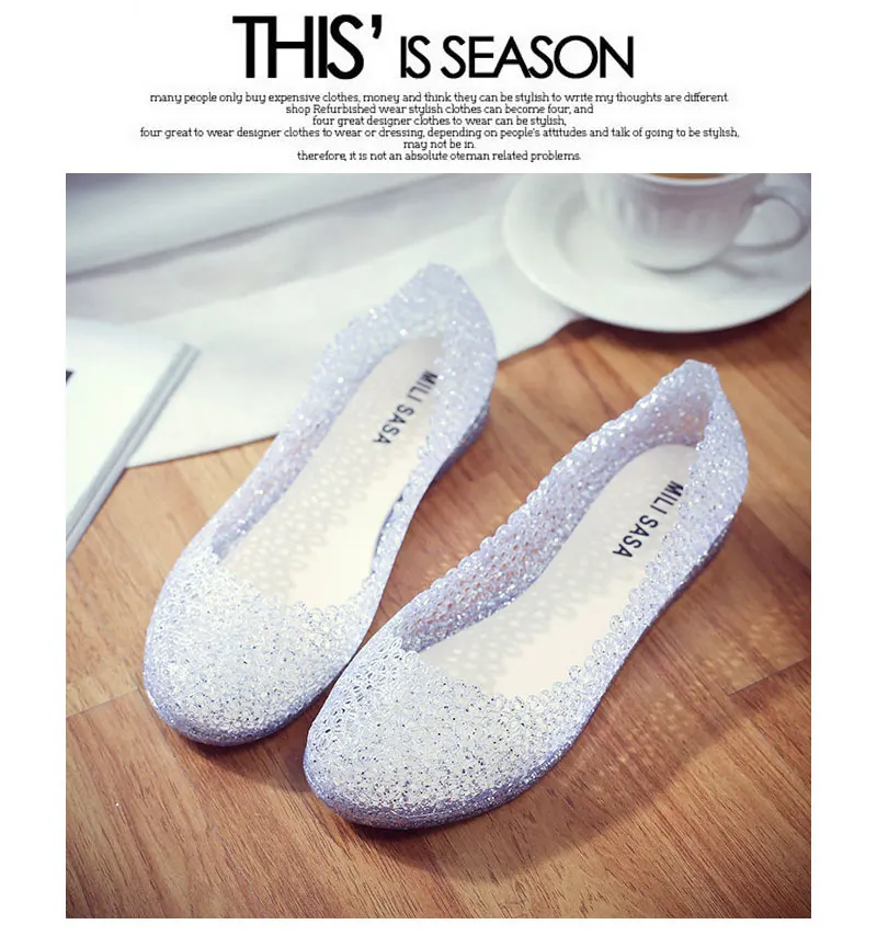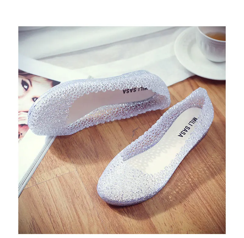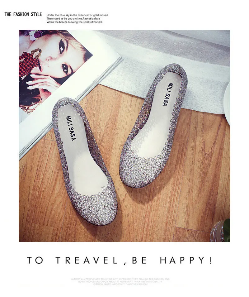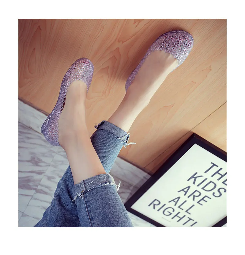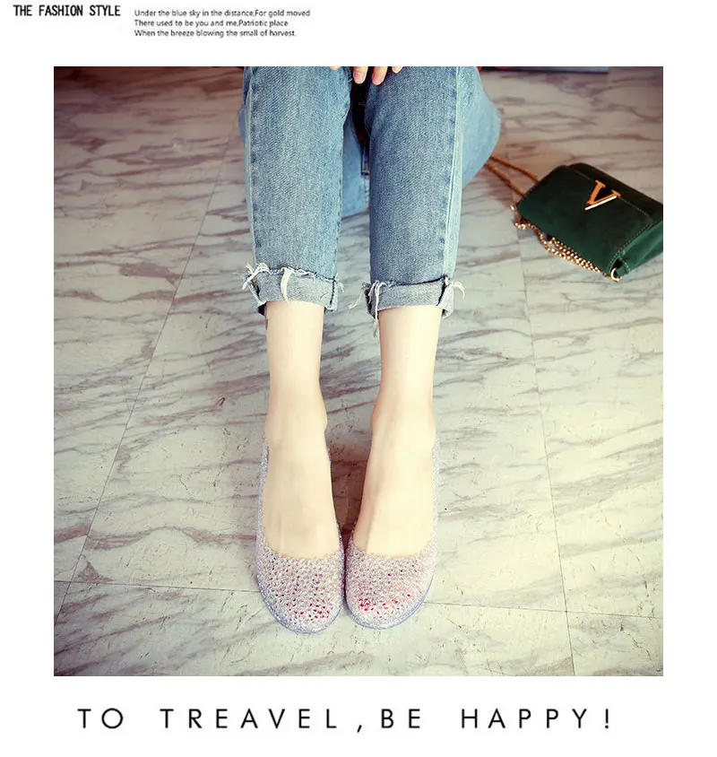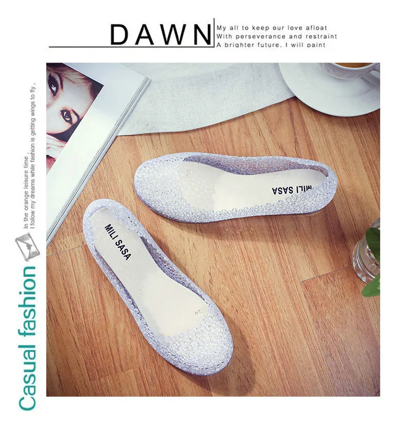 Features:jelly color / transparent / bling bling shoes / crystal shoes