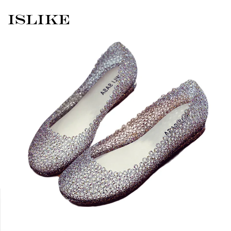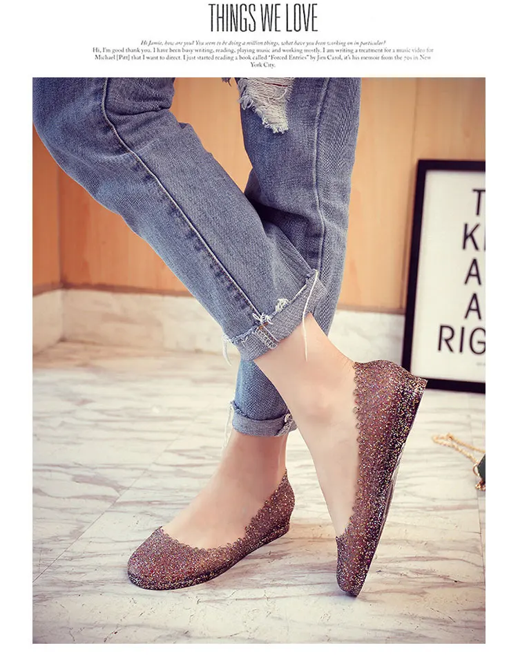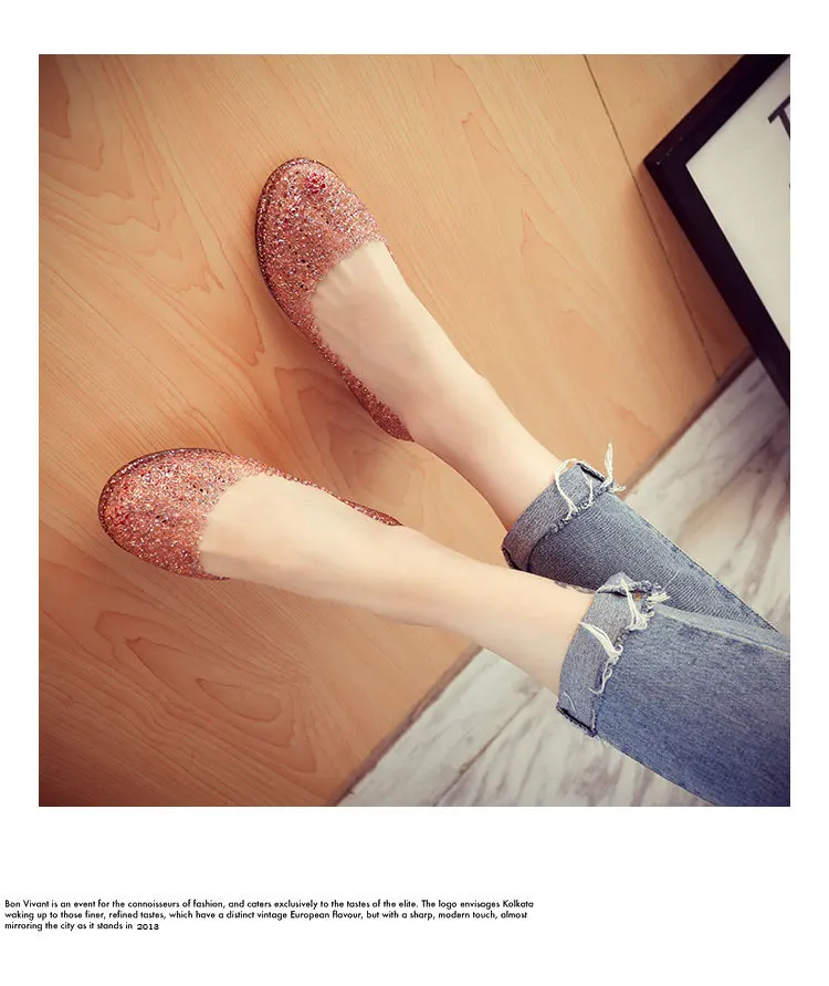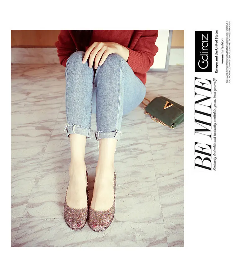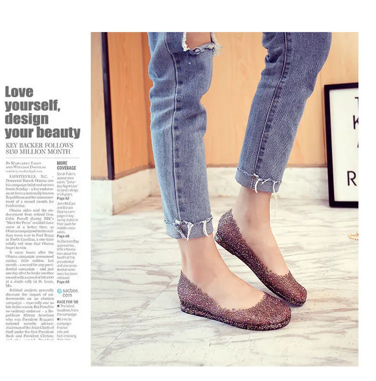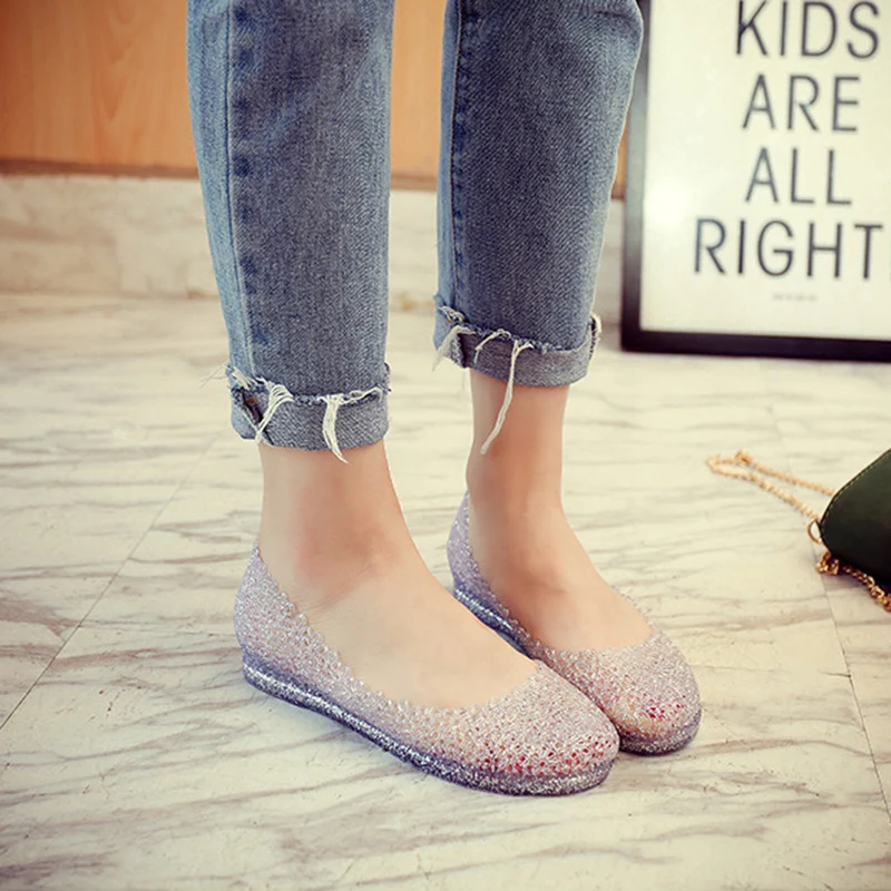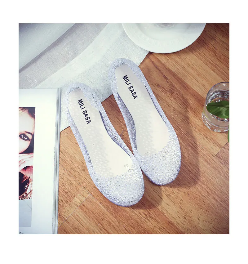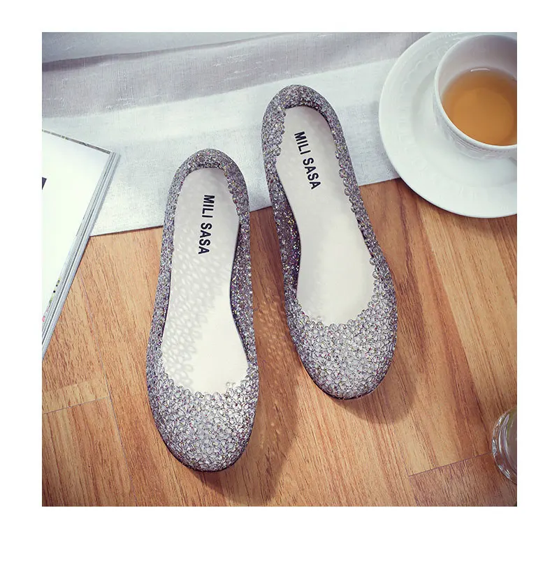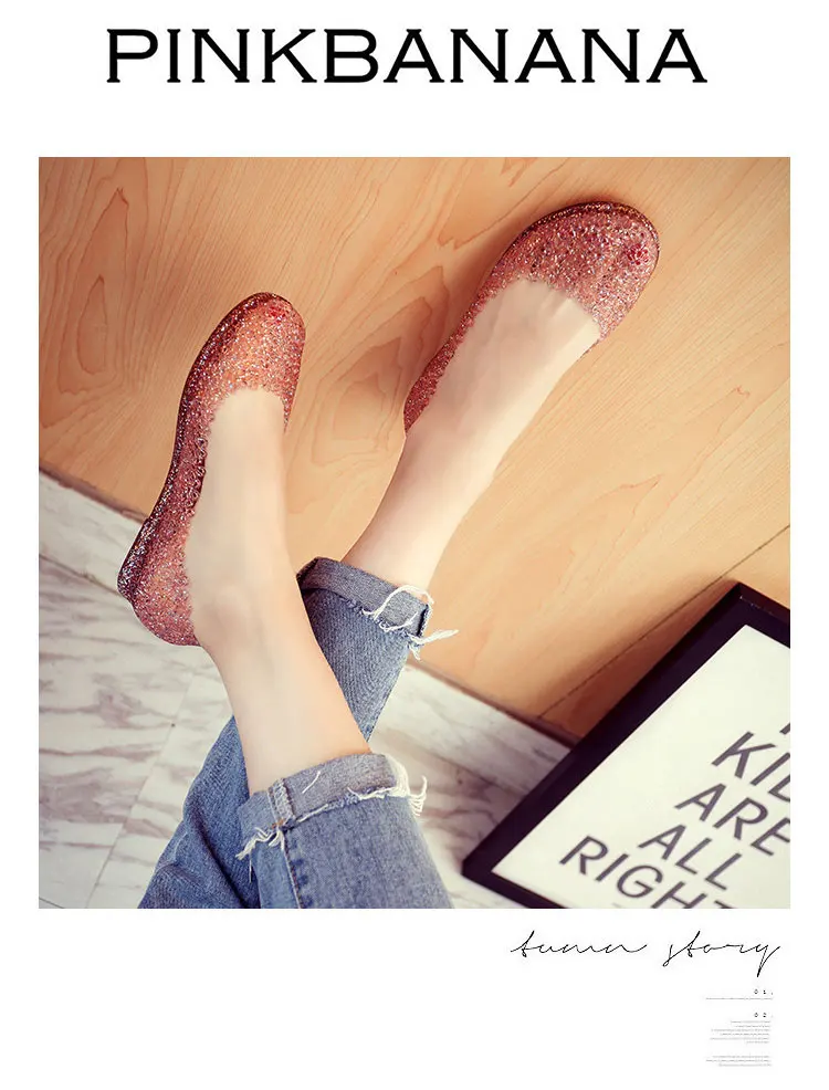 Features:jelly color / transparent / bling bling shoes / crystal shoes
