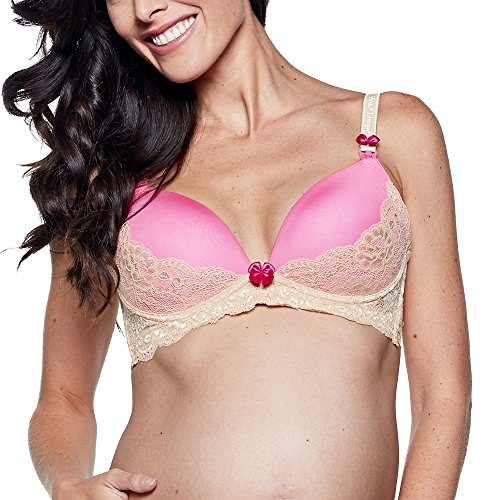 The Aurora bra is part of the You! Lingerie's Enchanted You! Collection - but best believe that it is anything but basic. Beautifully constructed maternity and nursing bras feature soft nude shimmer lace, full molded plunge pink color cups embellished with the brand's signature splash of hot pink color throughout - cup lining, nursing clips, and decorative bows. These super chic bras provide both function and everyday comfort. Use during pregnancy, breastfeeding and beyond. Care Instructions: Hand wash cold, non-chlorine bleach when needed, line dry.You are buying You! Lingerie quality, brand, promise, and customer service. If you are not happy with your purchase, please feel free to return your unworn merchandise for a refund.