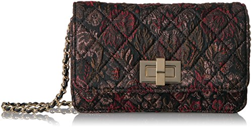 Ladies small quilted cross body with large turn lock on flap. Chain and pu cross body strap. Multiple inside compartments.