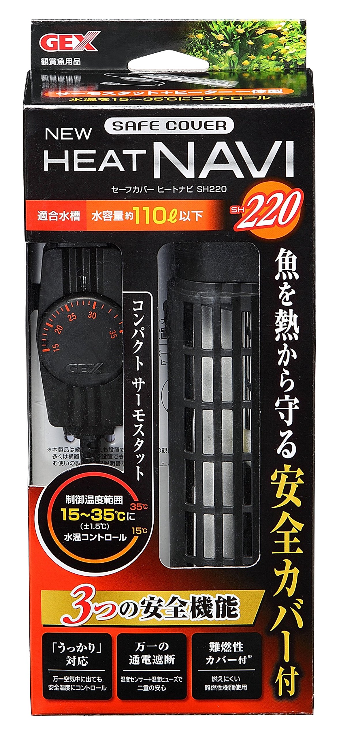 Safety, further strengthening! Protect fish from heat Integrated new structure auto heater of safety heater with compact thermostat! Integral type temperature variable heater of thermostat and 220 W heater that can control water temperature to 15 - 35 degrees!