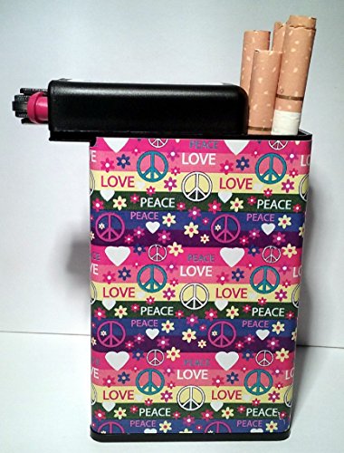Title : Cigarette Case Peace Signs Love Design Built on Lighter Holder box Kings 100's ryo