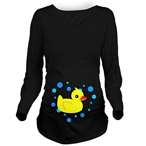CafePress Long Sleeve Maternity T-Shirt - Cute Yellow Rubber Ducky on Water Heart Long Sleev