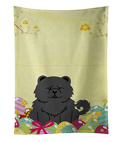 Caroline's Treasures Easter Eggs Chow Chow Black Kitchen Towel, Multicolor, 25" x 15"