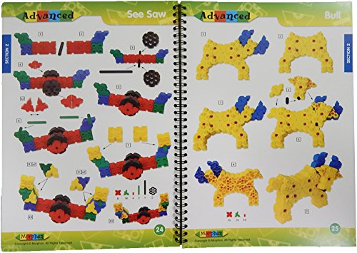 60page Morphun Junior Joining Bricks guide book Durable palstic coated booklet, Hard Pages Clear colored photo models with easy construction steps Great holiday gift Use with asin B00PR3RNSC and B00PR415FS