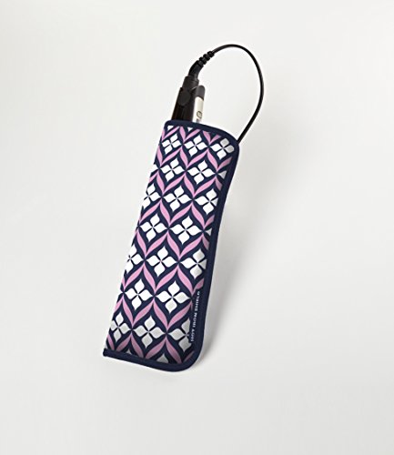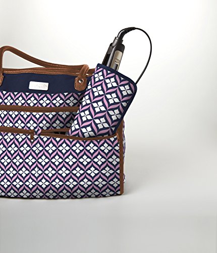 Fit & Fresh Hot Iron Shield, Heat-Resistant Travel Pouch for Flat Iron, Straightener, Curling Wand/Curling Iron (Navy Pink Lily Drop)