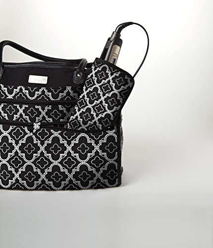 Fit & Fresh Hot Iron Shield, Heat-Resistant Travel Pouch for Flat Iron, Straightener, Curling Wand/Curling Iron (Black & White Dot Tile)