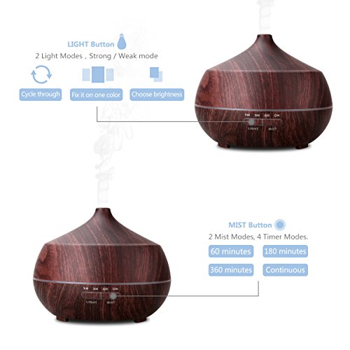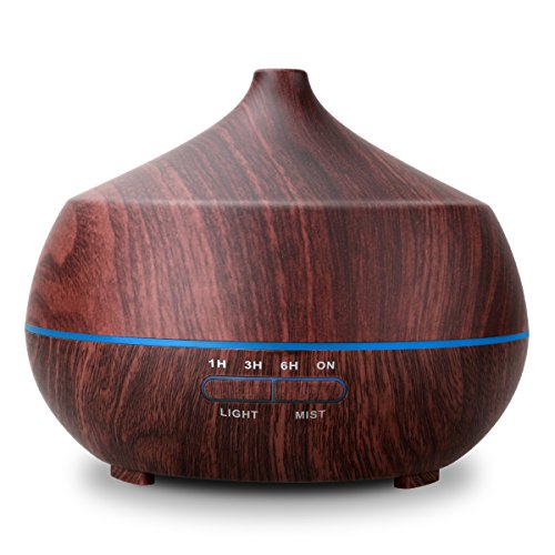 Aromatherapy Essential Oil Diffuser, Tonerone 400ml Ultrasonic Cool Mist Humidifier,6.5*5.4 in,Small body with natural wood grain, easy to assemble and apply to the office or home .2 buttons, the operation is simple and clear.