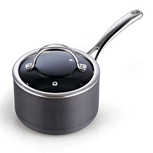 The Cooks Standard 3-Quart Hard Anodized Nonstick Saucepan with Lid, Black has a hard anodized surface is harder than stainless steel, dense, and chip-resistant. The heavy gauge aluminum core provides even heat distribution and prevents hot spots. Nonstick delivers exceptional performance and makes cleaning easy. Tempered glass lid with steam vent is protected by a stainless steel rim. Stainless steel handle is riveted for strength and stays cool. Not Induction compatible. Works on gas, electric, glass, ceramic, halogen, etc. Oven safe to 450F, glass lid is not oven safe. Hand wash recommended, not dishwasher safe.Feature