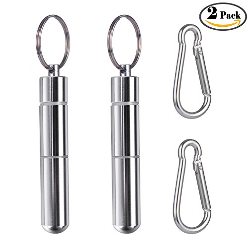 Whaline 2 Packs Toothpick Holders Pocket Toothpick Case Portable Aluminium Travel Waterproof Box Metal Pill Case with Keychain, 2.8 x 0.6 Inch