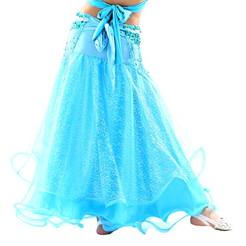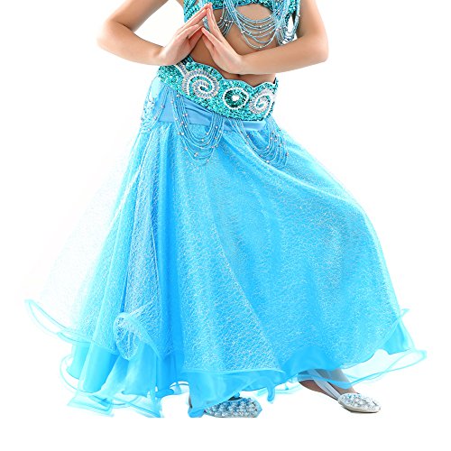 Dance Fairy Newest High Quality Lake Blue Kids Belly Dance Silver Mesh Skirt