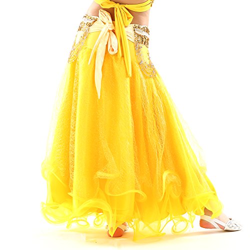 Dance Fairy Newest High Quality Yellow Kids Belly Dance Silver Mesh Skirt