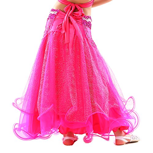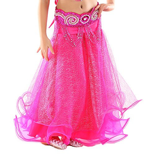 Dance Fairy Newest High Quality Rose Red Kids Belly Dance Silver Mesh Skirt