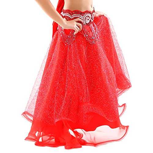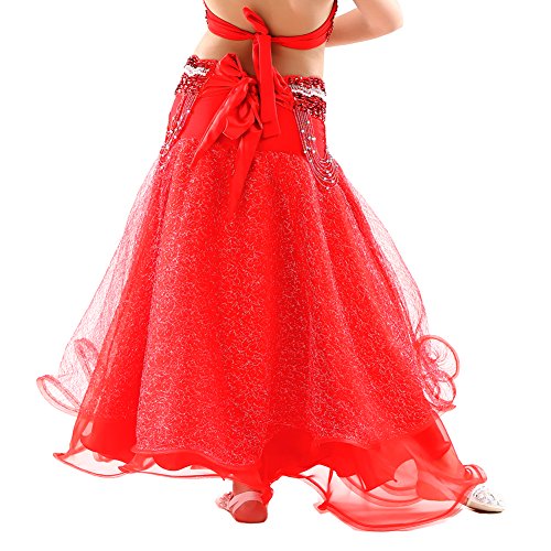 Dance Fairy Newest High Quality Red Kids Belly Dance Silver Mesh Skirt