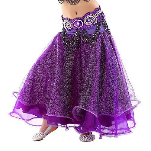 Dance Fairy Newest High Quality Purple Kids Belly Dance Silver Mesh Skirt