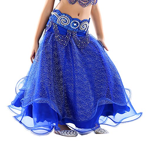 Dance Fairy Newest High Quality Royal Blue Kids Belly Dance Silver Mesh Skirt