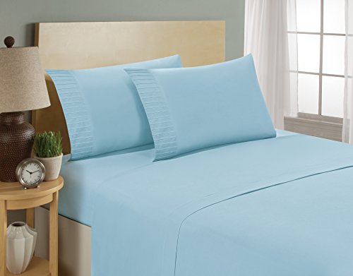 aJOY World Bed Sheet Set - Pleated 1800 Thread Count Ultra-soft Premium Collection, Wrinkle Free Bedroom Linen Set, 100% Soft Brushed Microfiber with Deep Pocket Sheet Set Twin, Aqua