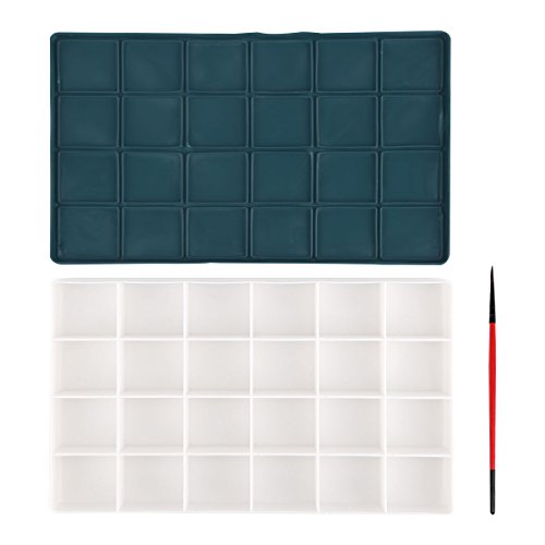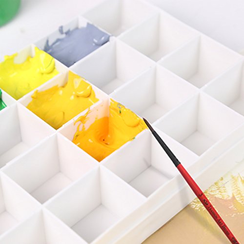 Transon Plastic Paint Palette Box 24 Large Deep Wells Airtight for Watercolors, Gouache, Acrylic and Oil Paint with 1 Fine Paintbrush