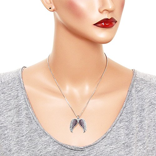 -. Title : Angel Wing Pendant Necklace Rhinestone Crystal High Polished Rhodium J0317-PP