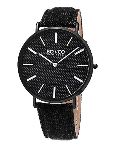 SO&CO New York Unisex 5103.4 SoHo Quartz Black Denim Leather Band Watch
