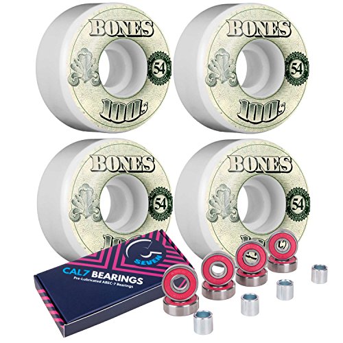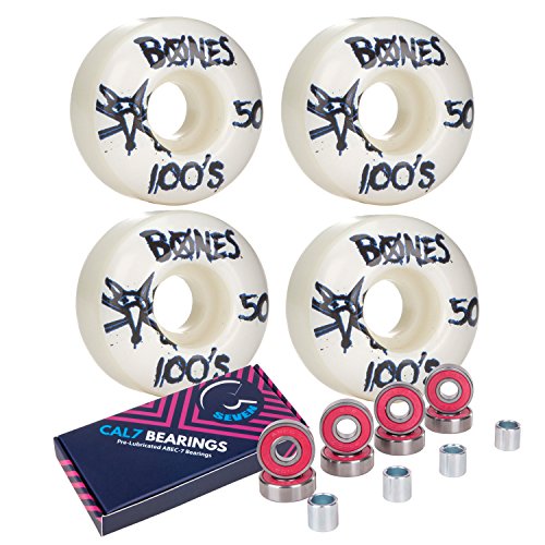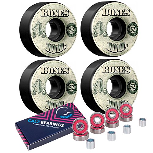 Cal 7 Skateboard Bundle - Bones Wheels 100's plus Cal 7 ABEC-7 Pre-Lubricated Bearings and Spacers