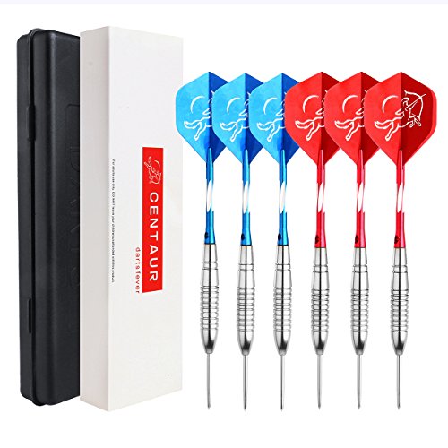 -. Feature : Designed with high quality steel barrels that provide exceptional balance and styling, each dart weighs-in at a sturdy 20 grams. / Unbreakable 2BA aluminum dart shafts make our tip darts much more durable than those PVC rods. / Feature poly pro dart flights which are specifically designed to help increase speed and reduce drag, laser effect makes them shining and attractive in each way. / Professional darts set works for all skill levels. The heavier the dart the more stable the flight, which should enable you to hit your target more often. / 6 Pack in 2 Styles (Blue/Red), each set (3 Pack) in one dart case, making them easy to carry and store, also as a great gift idea. Proudly offered by Centaur 326 series, 30 days NO QUESTION ASKED money back guaranteed.