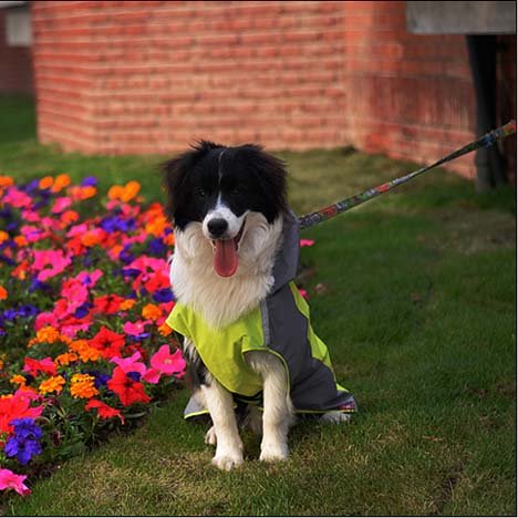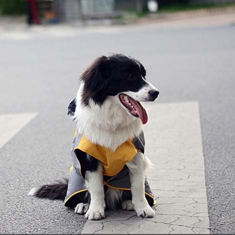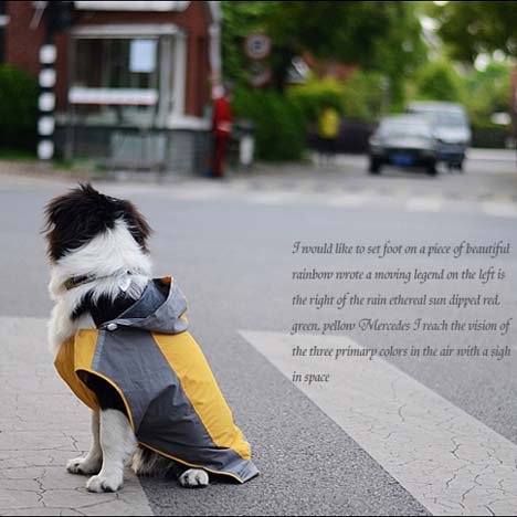 - Feature : Pet poncho raincoat for medium to large dogs / 2 layers design: outside waterproof material 65% Nylon & 35% Polyester, inside mesh fabric 100% Polyester / Super waterproof material and breathable design / Waterproof rain jacket help to keep pets dry and comfortable / Model dog (Back length 20 inches, Chest girth 25 inches, Neck girth 15 inches, Weight 35 lbs) wears size 8
