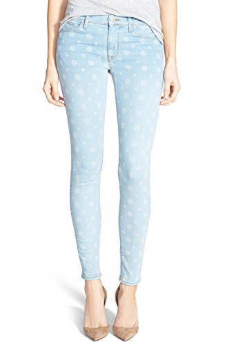 Product DescriptionMid-rise stretch jean in a light wash with a subtle polka dot print, a slim tapered leg, 5-pocket styling and zip fly with button closure0