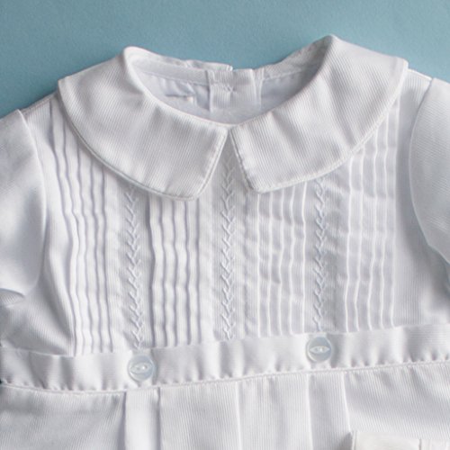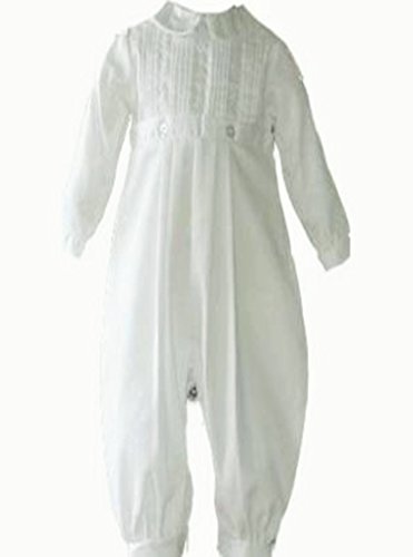 White Classic pique longall with coordinating hat. This traditional one-piece cotton blend outfit includes pintucks and simple embroidery for added elegance. Perfect for a Christening, Baptism, Blessings and special occasions.Feature